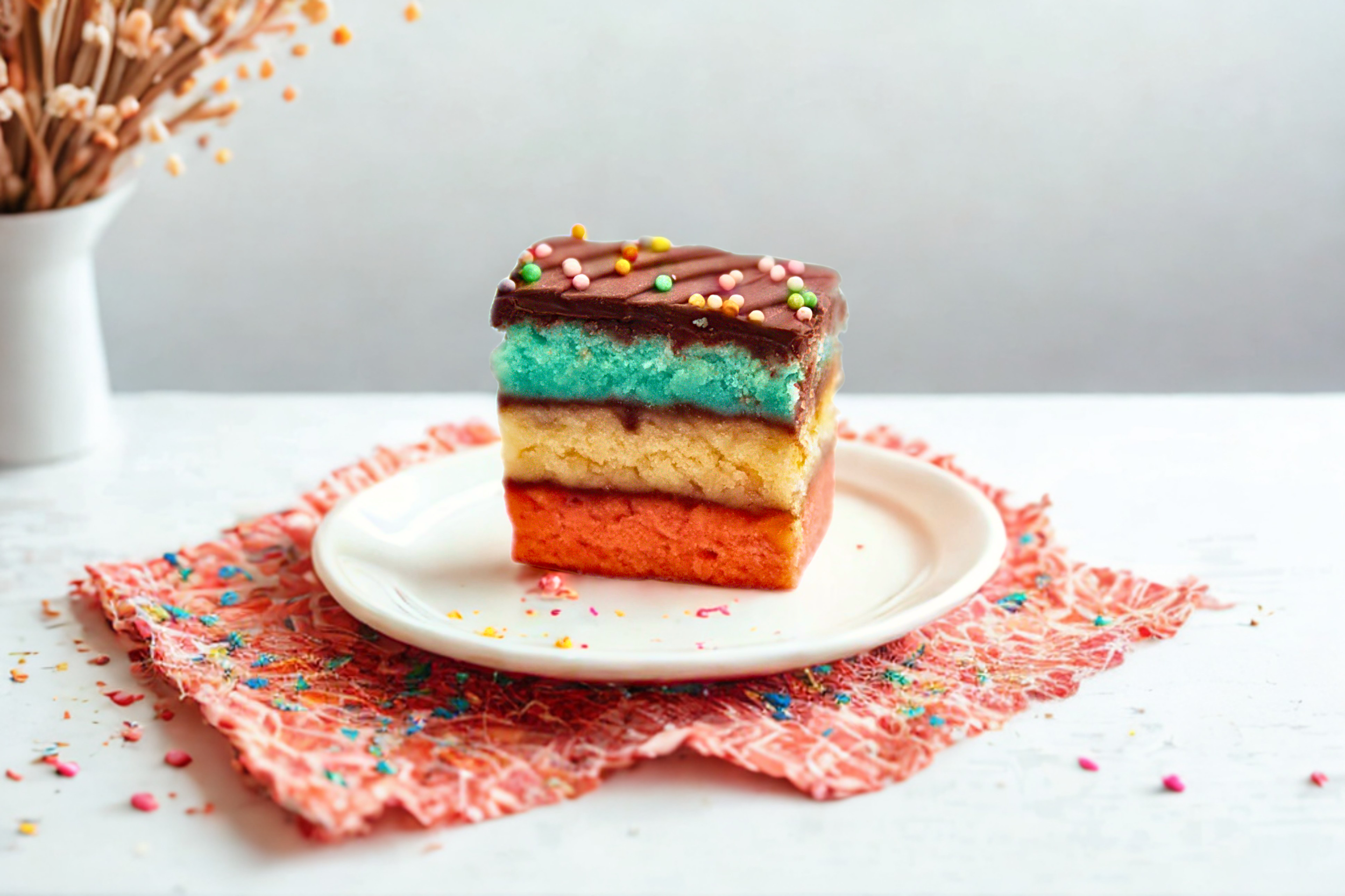 Ciao, I’m the Italian Rainbow Cookie — colorful, layered, and full of flavor. With almond sponge cake stacked high in vibrant layers of green, red, and natural almond, I’m held together by a thin spread of fruit jam. Raspberry or apricot? Well, that’s the great debate. (I’ll admit, I lean raspberry…..But I won’t argue if you’re team apricot.